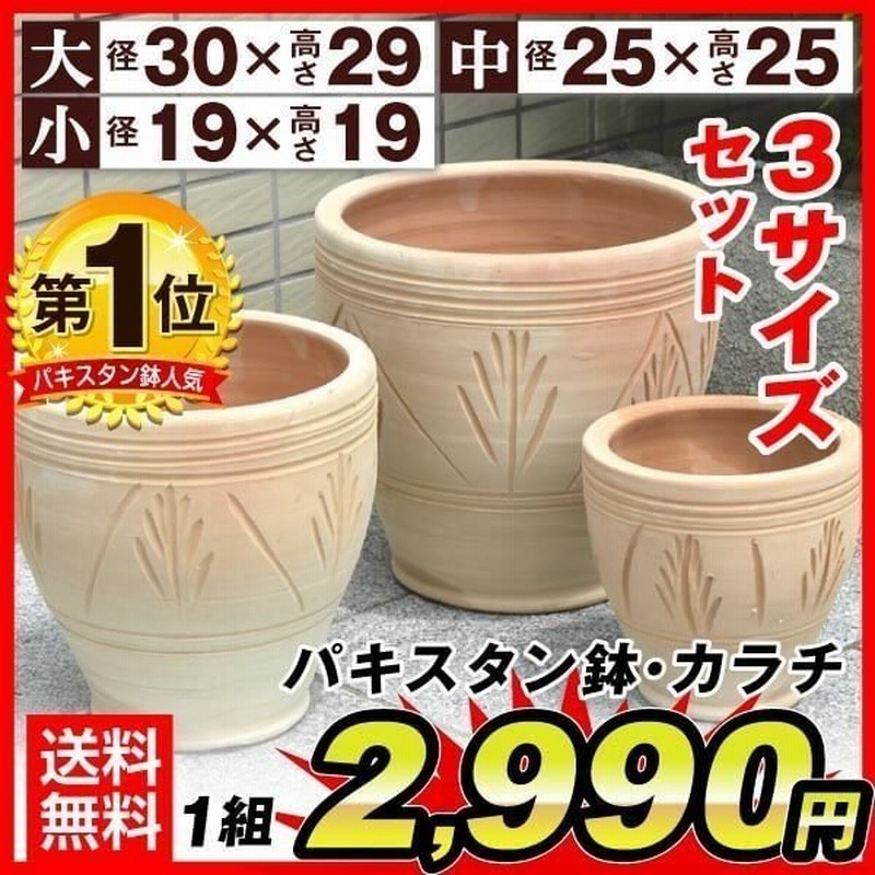 植木鉢 テラコッタ 素焼き鉢 おしゃれ トマト栽培 パキスタン鉢 カラチ 大中小セット 3種組 国華園 通販 Lineポイント最大0 5 Get Lineショッピング